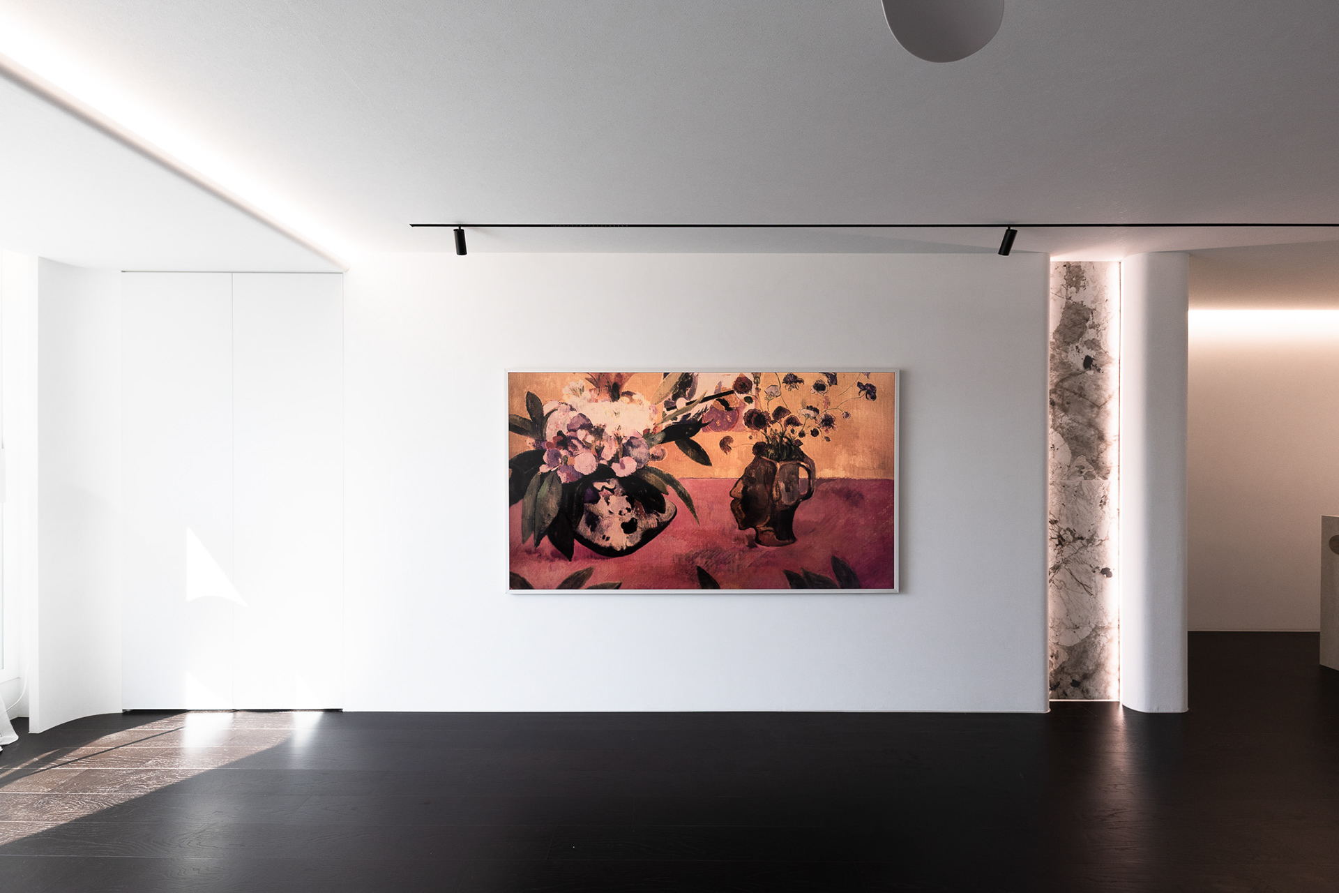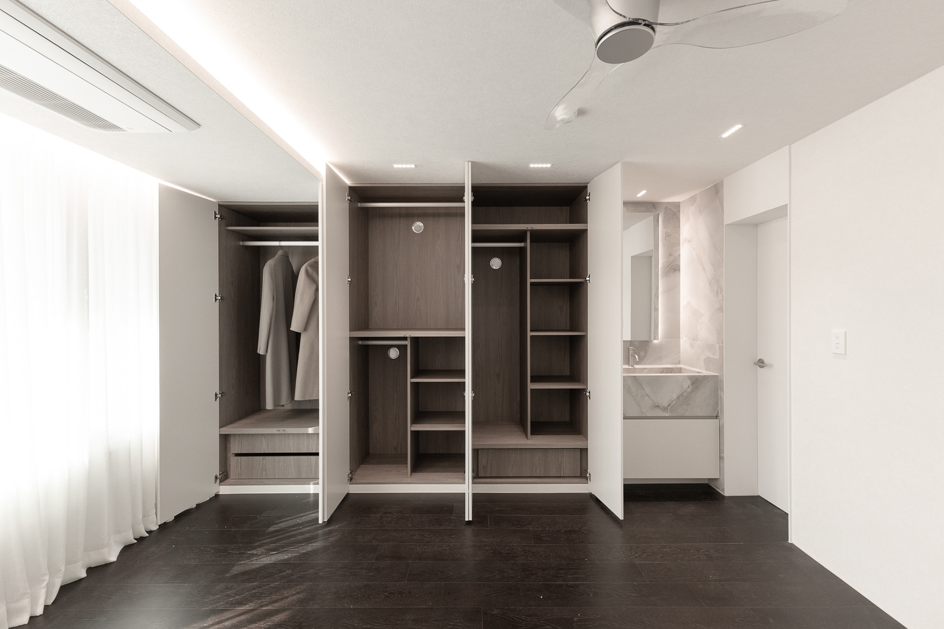 이번 현장은 대비가 만들어내는 우아하고 세련된 미학에 주목했습니다. 블랙&화이트의 명확한 대비를 통해 묵직한 깊이감과 도회적인 고급스러움이 공존하는, 편안한 휴식처를 완성하는 데 초점을 맞췄습니다.