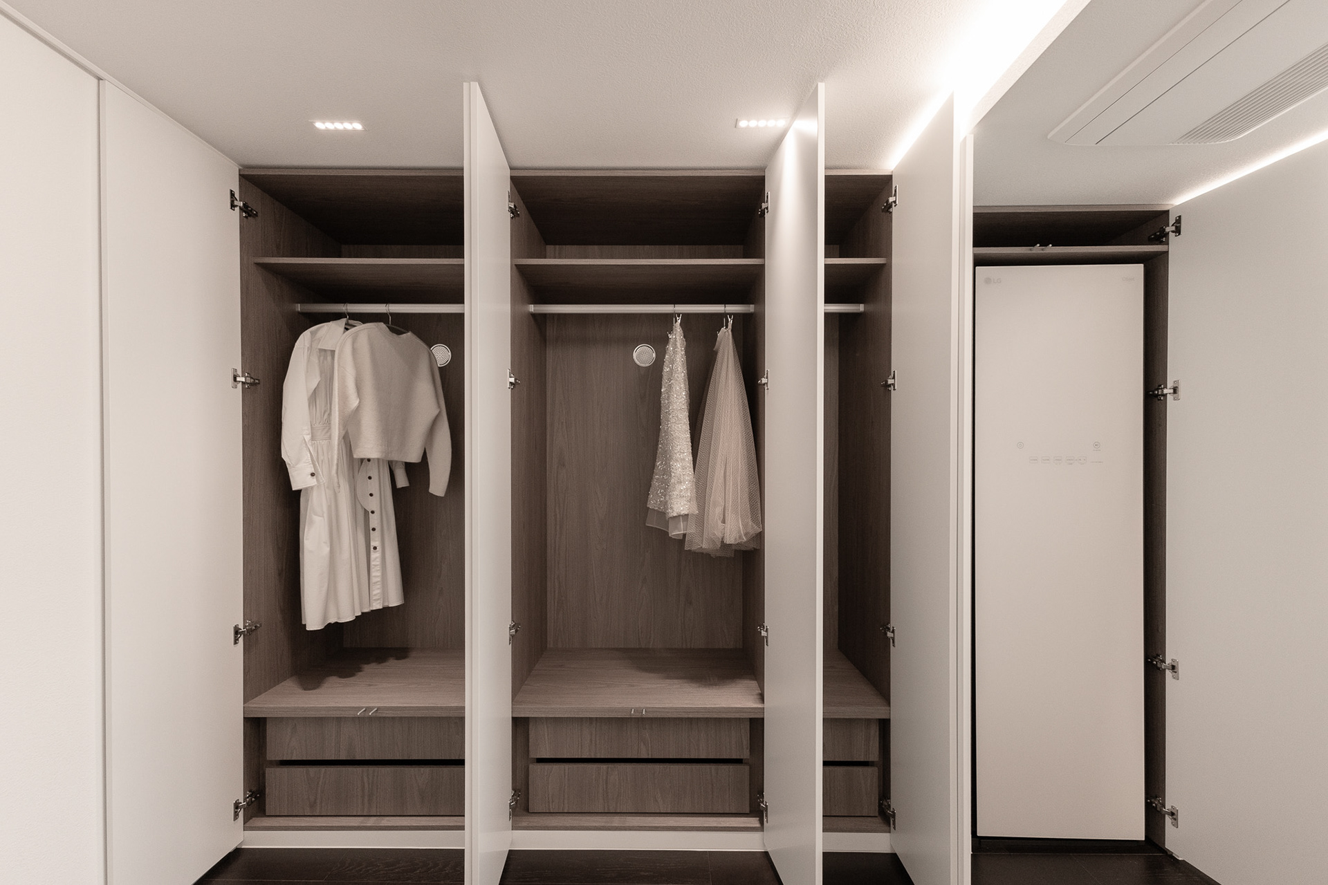 블랙&화이트가 선사하는 시크한 미학, 그리고 구조적 한계를 뛰어넘는 섬세한 설계가 돋보이는 삼성대성유니드. 두 분의 감각적인 취향과 생활의 편의가 완벽한 균형을 이룬 이곳에서, 부부의 일상이 한 편의 영화처럼 아름답고 우아하게 흐르기를 진심으로 바랍니다.